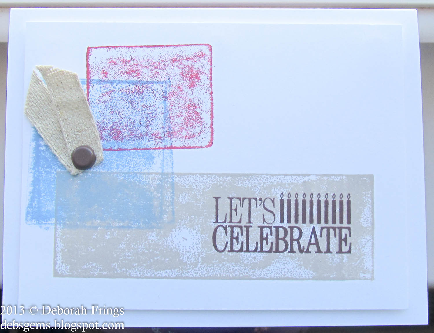 This is such a bright, cheerful card - and it's lovely to be able to play with stamps that I don't have. Our next card is quite clean and simple (and very easy to make). Actually it's a good card for men.